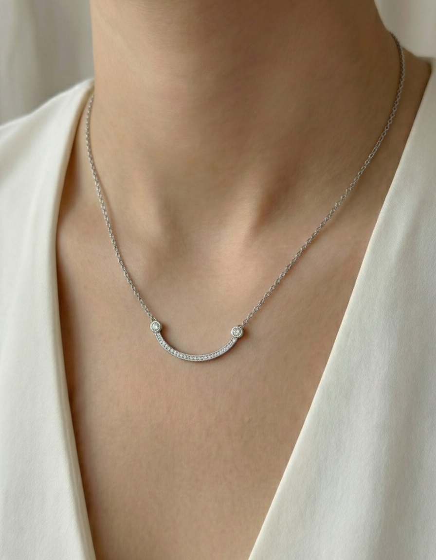 Elegante Silber-Halskette mit funkelndem Zirkonia-Bogen