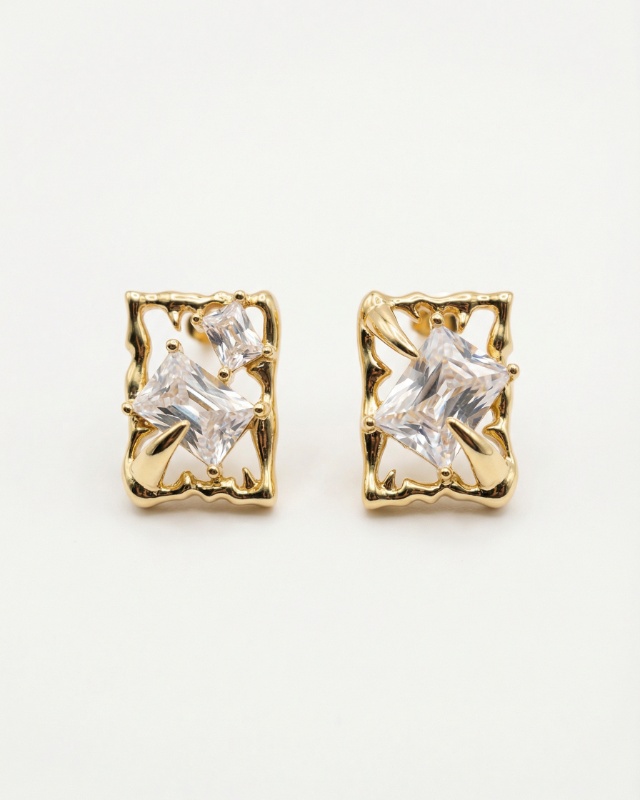Diese luxuriösen Ohrringe begeistern mit ihrem eleganten, modernen Design und einer sinnlichen Ausstrahlung. Die goldfarbene Fassung umrahmt kunstvoll die klaren, funkelnden Steine und verleiht ihnen eine besondere Tiefe und Brillanz. Die Kombination aus glänzendem Gold und den präzise geschliffenen Steinen sorgt für einen edlen, verführerischen Look, der sofort ins Auge fällt. Diese Ohrringe wirken luxuriös, stilvoll und feminin – perfekt für einen eleganten Auftritt.