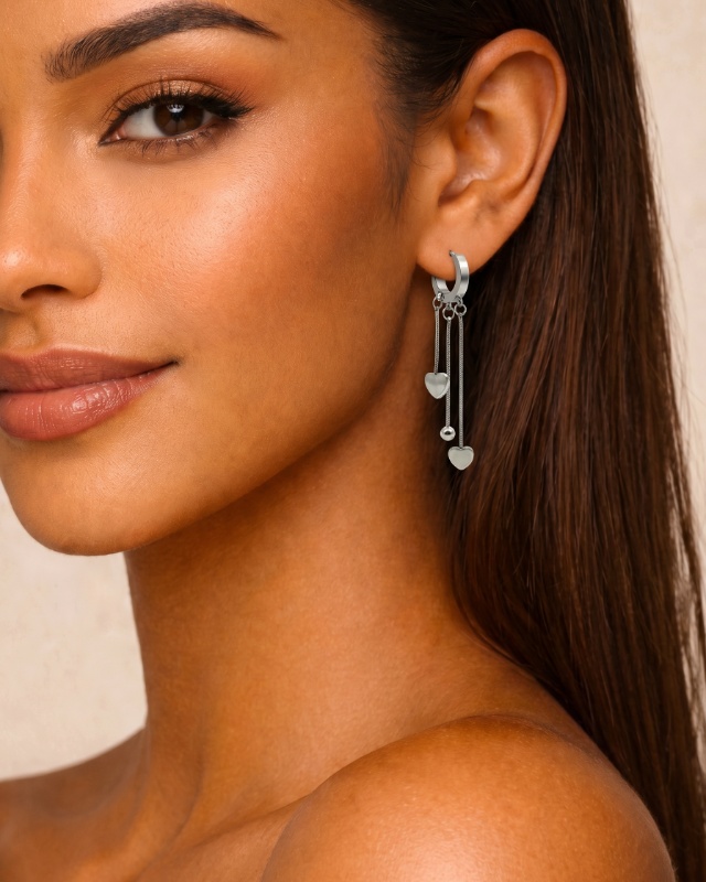 Das klare Silberdesign sorgt für eine zeitlose, kühle Eleganz, während die Herzdetails dem Schmuckstück eine dezente romantische Note geben. Ob im Alltag oder zu besonderen Anlässen – diese Ohrringe setzen stilvolle Akzente und unterstreichen einen modernen, selbstbewussten Look.