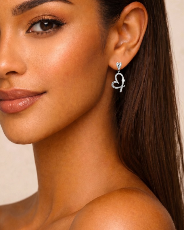 Diese Ohrringe präsentieren sich in einer eleganten, filigranen Gestaltung in Silberoptik und verbinden mehrere harmonische Elemente miteinander. Im oberen Bereich befindet sich ein kleines, glatt gearbeitetes Herz, das in ein größeres, offenes Herz übergeht. Dieses ist teilweise mit kleinen, klaren, funkelnden Steinen besetzt, die für ein feines Lichtspiel sorgen. Eine runde, glatte Perle ist seitlich in das Design integriert und setzt einen sanften, kontrastierenden Akzent. Die geschwungene Linienführung und die Kombination aus glänzender Oberfläche, funkelnden Steinen und Perle verleihen den Ohrringen eine luxuriöse und stilvolle Ausstrahlung.