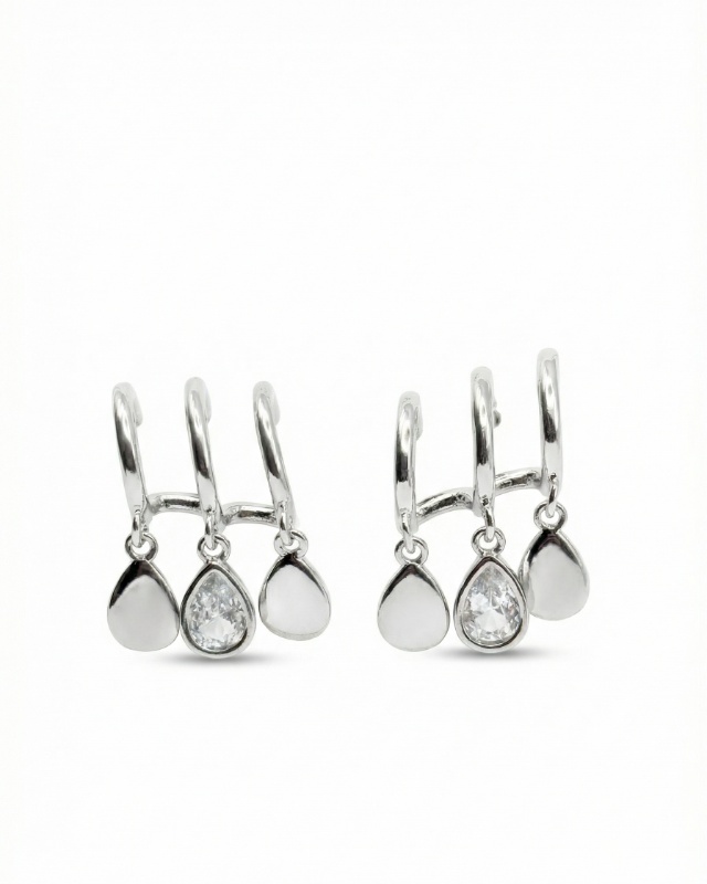 Silberne Ohrringe mit tropfenförmigen Anhängern und funkelndem Detail – modern, elegant und leicht verspielt.