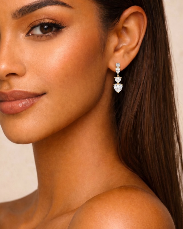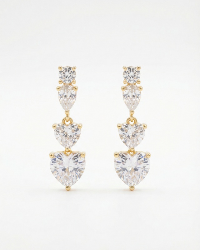 Diese luxuriösen Ohrringe strahlen pure Eleganz und Raffinesse aus. Das längliche Design ist mit mehreren funkelnden, klaren Steinen verziert, die harmonisch untereinander angeordnet sind. Unterschiedliche Schliffe – von rund über tropfenförmig bis hin zu herzförmig – sorgen für ein lebendiges und zugleich edles Erscheinungsbild. Die goldfarbene Fassung unterstreicht den brillanten Glanz der Steine und verleiht dem Schmuckstück eine besonders hochwertige Ausstrahlung. Diese Ohrringe wirken stilvoll, feminin und verleihen jedem Look einen Hauch von Luxus.
