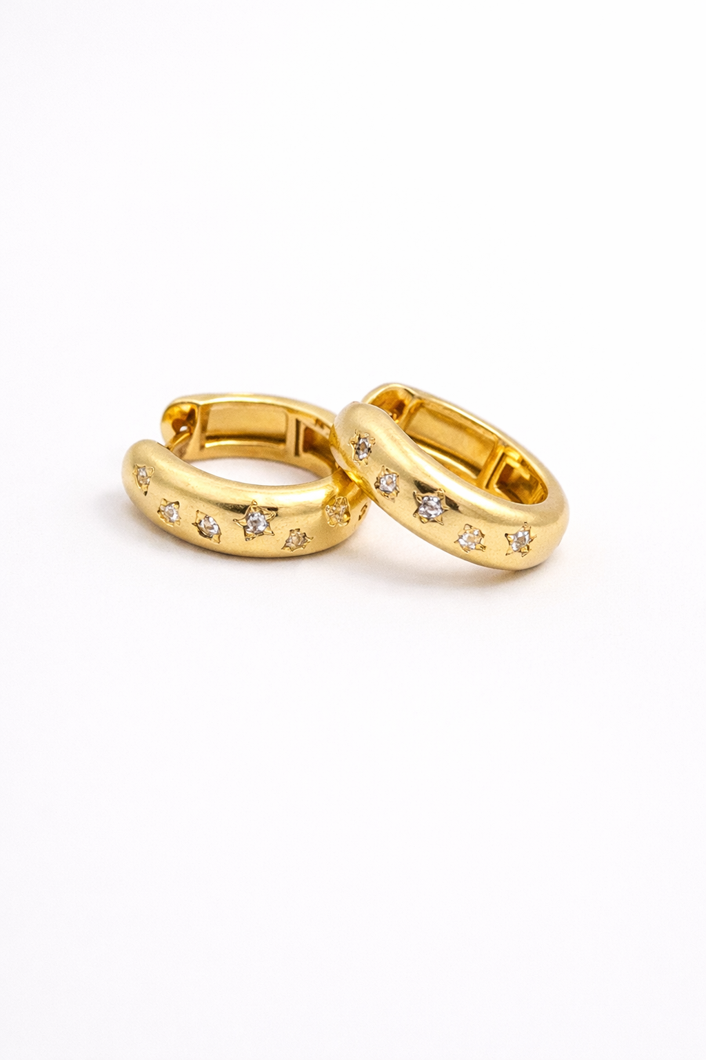 Luxuriöse Gold-Ohrringe mit funkelnden Steinen – elegant, modern und stilvoll.