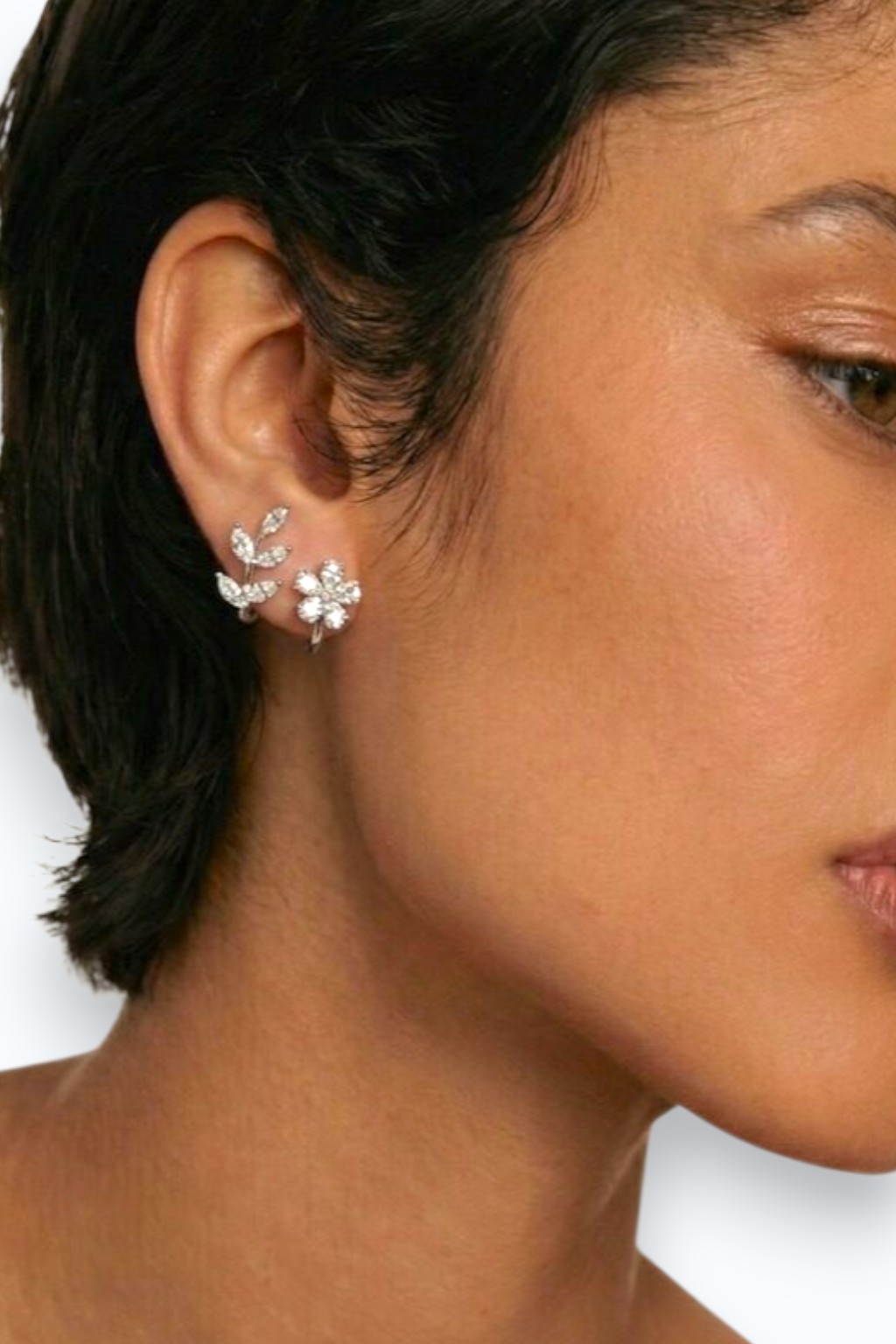 Die Ohrringe sind ein luxuriöses und elegantes Schmuckstück mit einem zarten, floralen Design. Die funkelnden Elemente sind in Form kleiner Blüten und feiner Zweige angeordnet und verleihen dem Schmuck eine natürliche und zugleich edle Ausstrahlung. Die klaren, strahlenden Steine reflektieren das Licht wunderschön und sorgen für einen dezenten, aber luxuriösen Glanz.