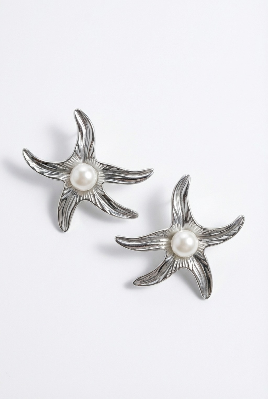 Diese luxuriösen Ohrringe überzeugen mit einem eleganten Design in Form eines Seesterns in glänzendem Silber. Die fein strukturierten Linien verleihen dem Schmuckstück eine lebendige und zugleich stilvolle Ausstrahlung. In der Mitte sorgt eine runde, schimmernde Perle für einen edlen Akzent und unterstreicht die hochwertige Optik. Die Kombination aus klarer Form und feinen Details macht diese Ohrringe zu einem besonderen, stilvollen Blickfang.