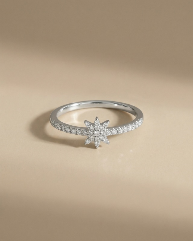Luxuriöser, eleganter Ring mit sternförmigem Design und funkelnden Steinen – feminin, stilvoll und wunderschön.