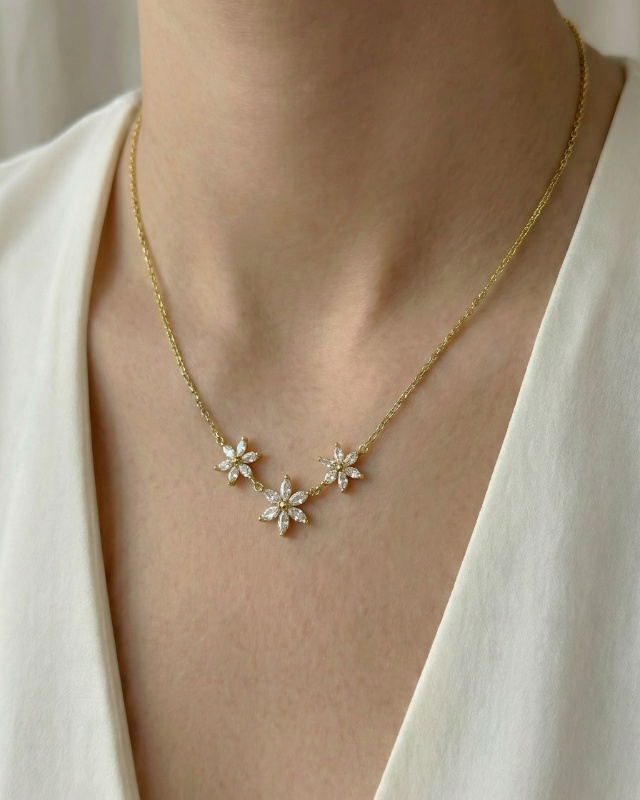 9,95 € inkl. MwStHalskette 3 Blüten Gold