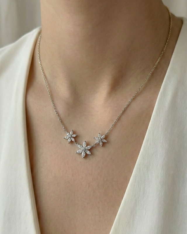 9,95 € inkl. MwStHalskette 3 Blüten Silber