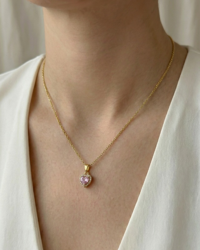 9,95 € inkl. MwStHalskette Pink Herz Gold